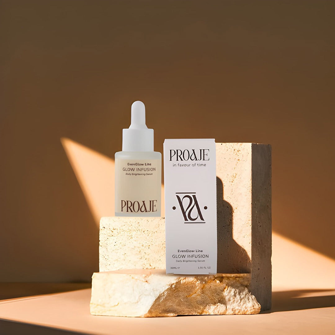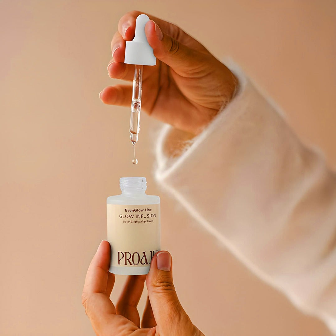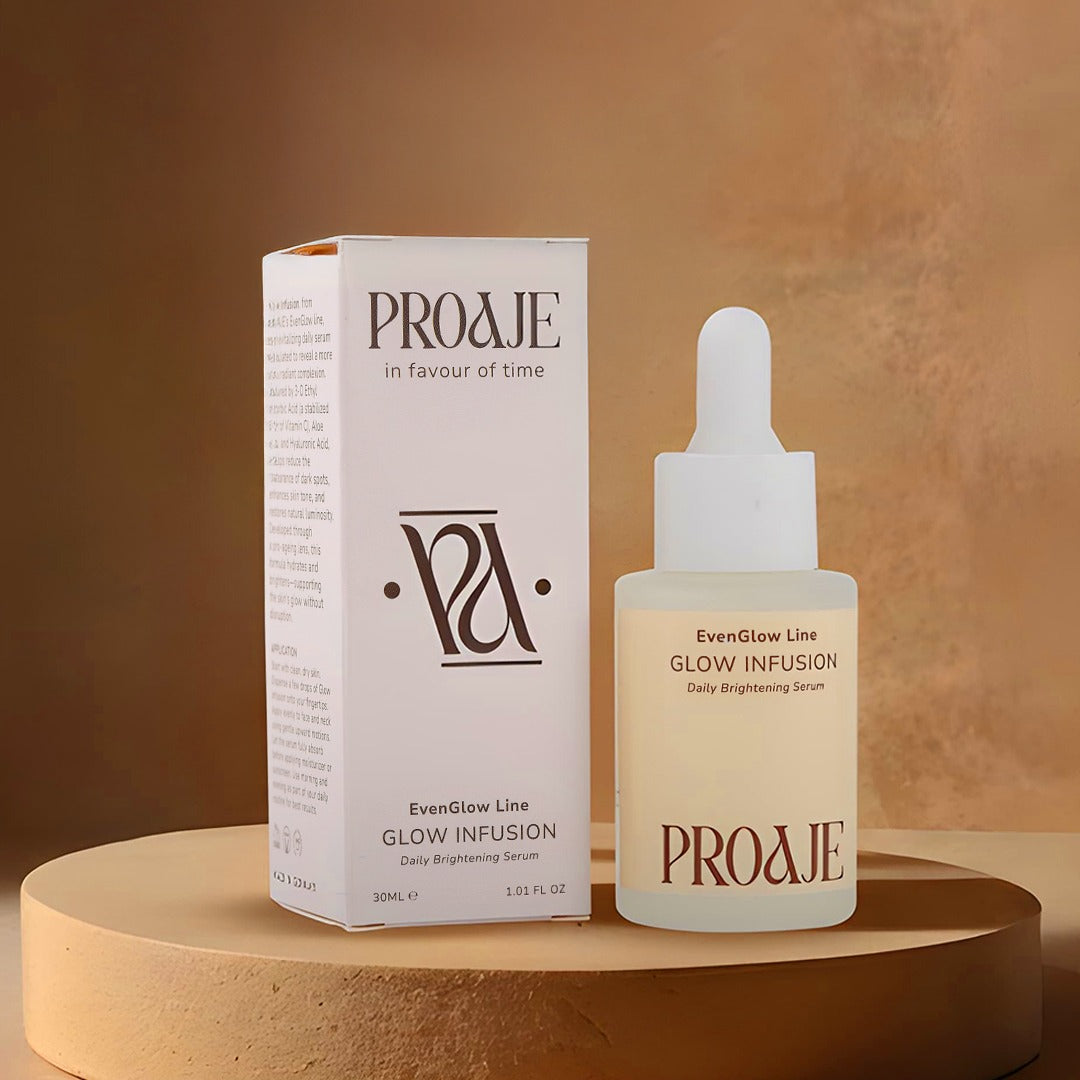 Infusion, from PROAJE’s EvenGlow line, is a revitalizing daily serum developed through meticulous research and advanced skincare innovation. Crafted to address hyperpigmentation, uneven tone, and dullness, this high-performance formula reveals skin that looks visibly brighter, whiter, and smoother with each use.